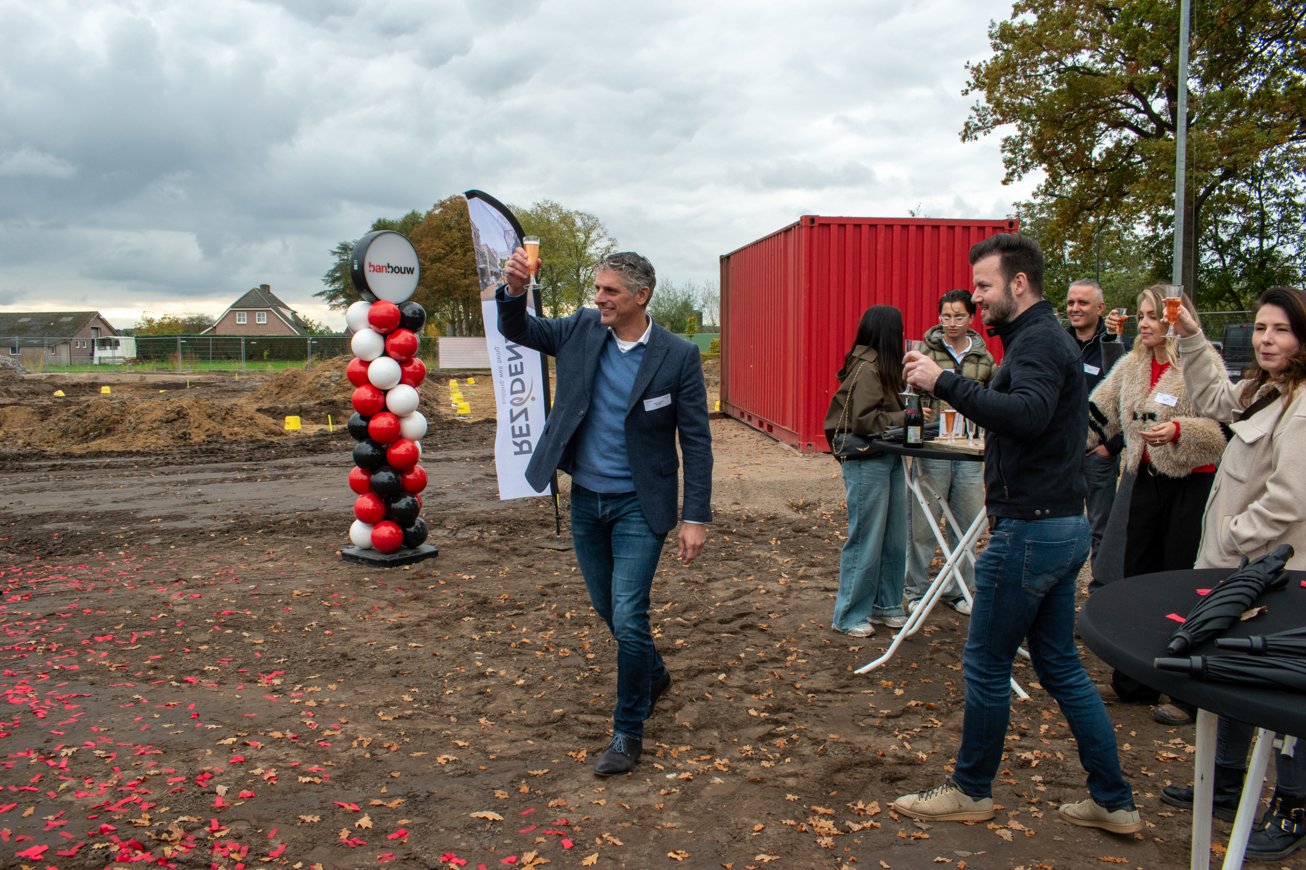 Tijdens de bijeenkomst konden de kopers met eigen ogen zien dat de werkzaamheden inmiddels in volle gang zijn: op de achtergrond werden de eerste palen geboord. Na het officiële woord van Johan werd de start van de bouw feestelijk gemarkeerd met het sabreren van champagne door de kopers. Dat ging verrassend goed! Een mooi en symbolisch begin van een nieuw hoofdstuk. Aansluitend werd de middag voortgezet bij restaurant Ratatouille in Nuenen, waar de toekomstige bewoners elkaar beter leerden kennen.